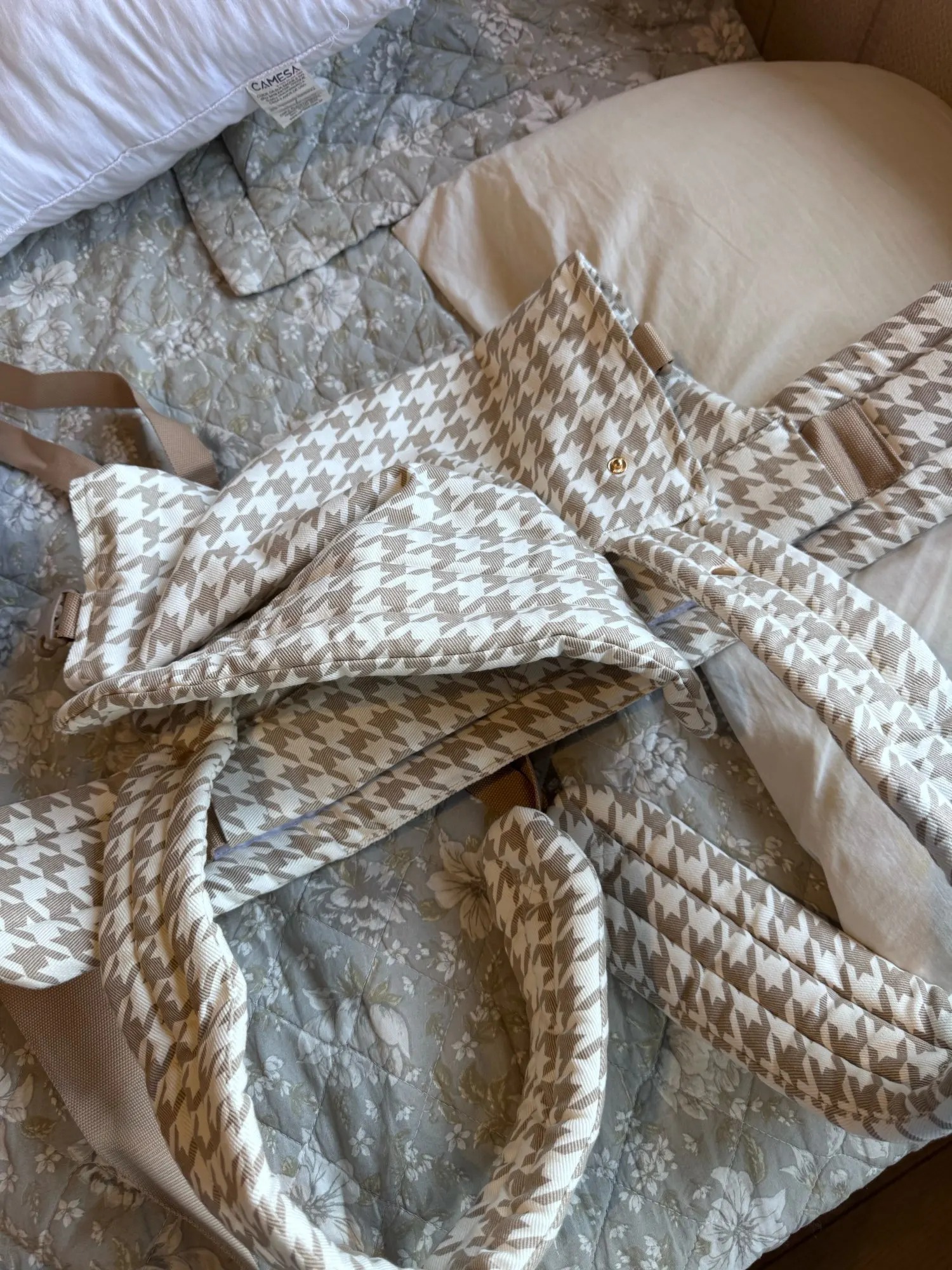 With our signature houndstooth designs, classic neutrals, and two carefully selected fabric options, you can choose a carrier that fits your lifestyle, climate, and personal style—without compromising on comfort or support.
